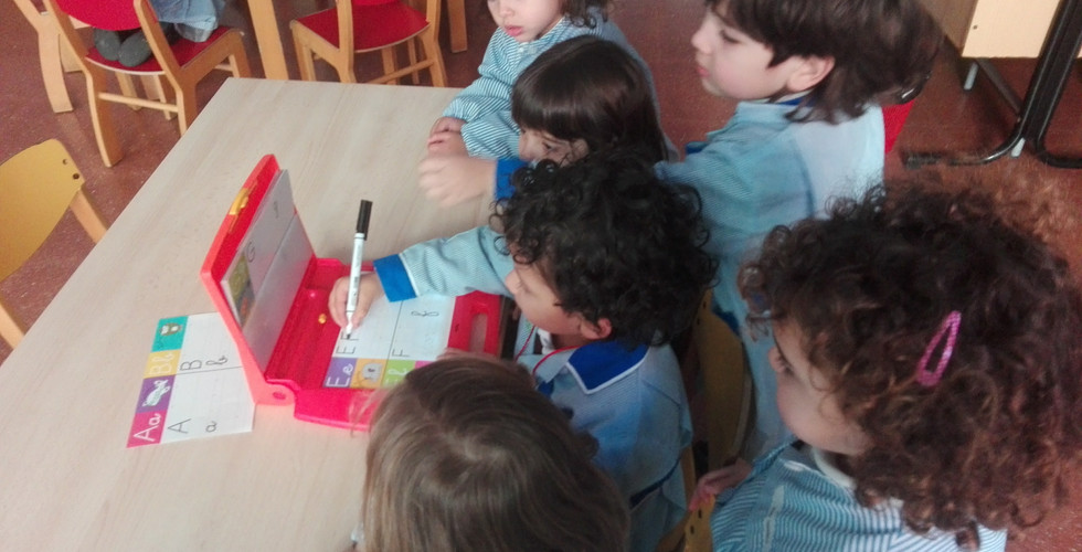 L’última cosa que ens va ensenyar, va ser una joguina molt divertida amb la que practica el traç de les lletres. A tots els companys els va cridar molt l’atenció i van poder jugar-hi una mica.