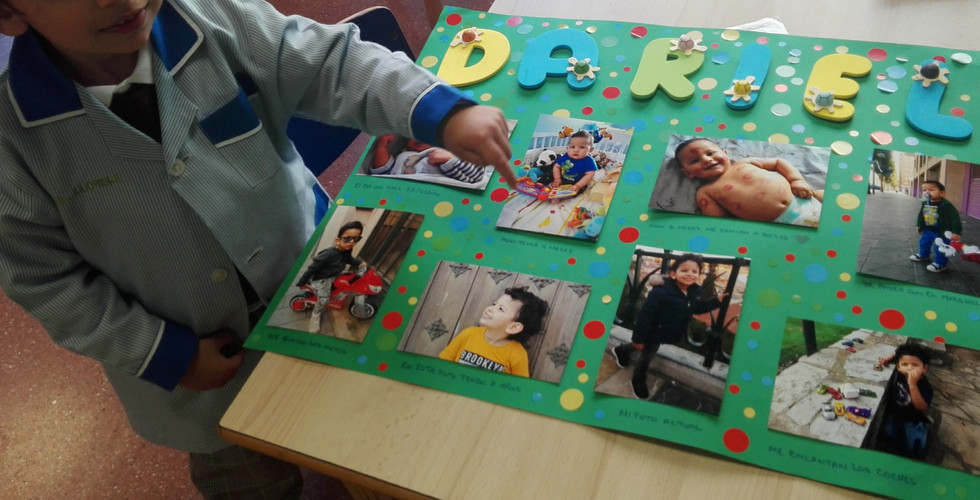 El primer dia ens va ensenyar un mural amb un recull de fotografies, on podíem veure imatges des del seu naixement fins ara; els seus peluixos preferits, que l’acompanyen cada nit per anar a dormir; uns objectes de quan era un nadó: el seu primer xumet, un gorro, un pitet, dos bodys molt divertits, les seves primeres sabates, un joc i unes fotografies de la seva família.