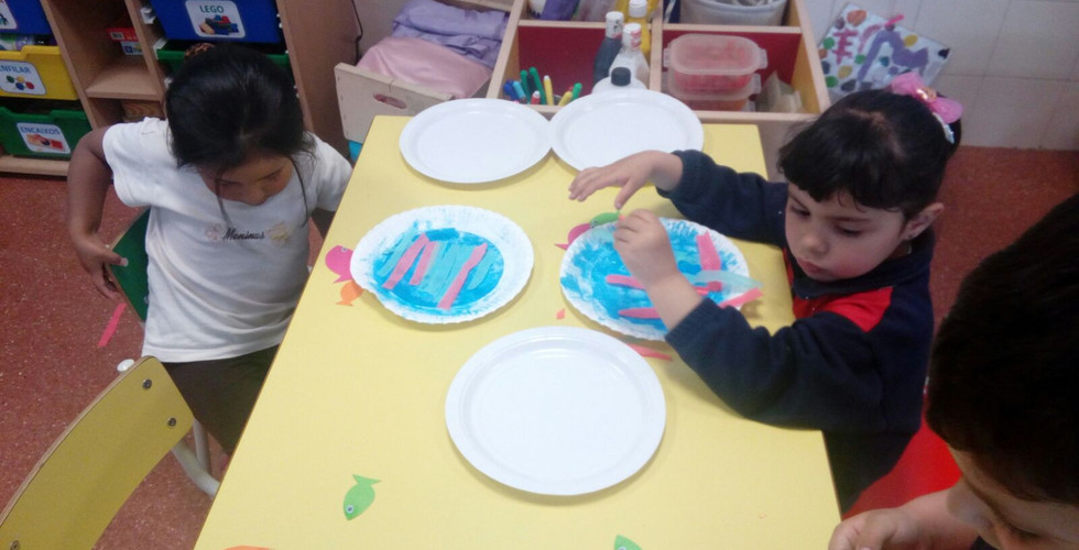 El passat divendres, van venir els pares de la Paula a l’escola i vam fer un plat del fons marí! Primer ens van repartir un plat de paper i el vam pintar de color blau amb esponges! Els pares de la Paula ens van donar uns peixets i els hi vam enganxar els ulls. Després vam tallar paperets de seda en trossets petits i els vam enganxar el plat! Quins plats més bonics que van quedar!!!