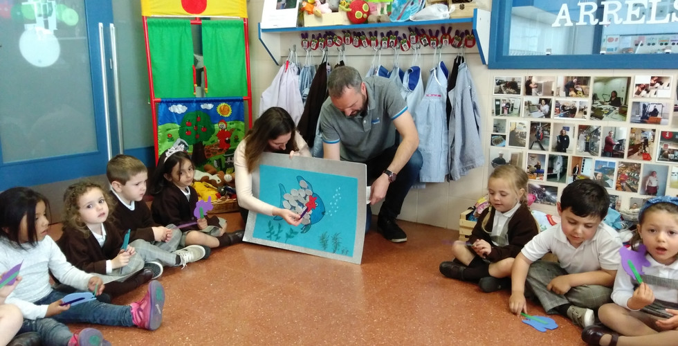 El dijous per la tarda, els seus pares van venir a l’escola i ens van explicar el conte del Peix Irisat! Van portar un peix molt bonic que havien fet ells, amb escates brillants. A continuació, ens van donar un peixet a cadascú i li vam poder enganxar una escata brillant!