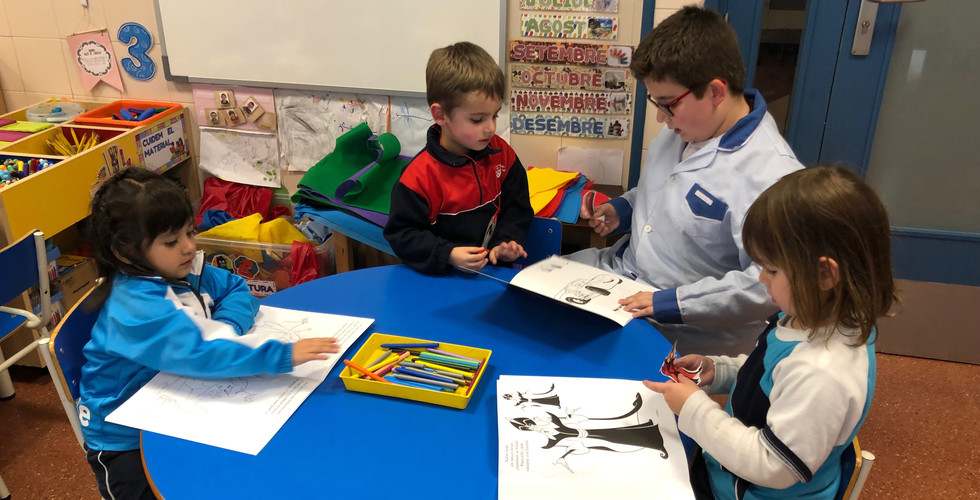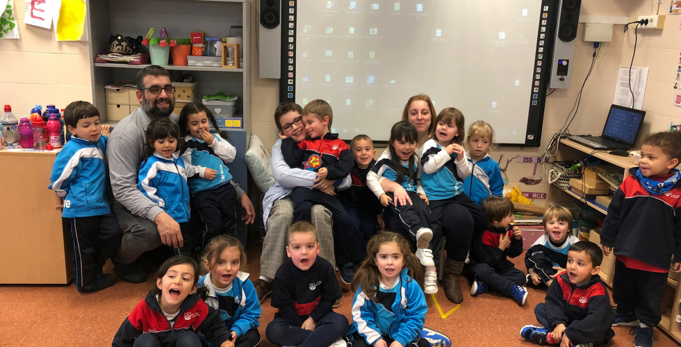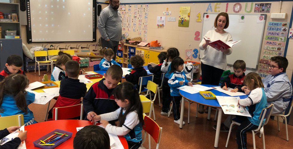 El dimarts ens van venir a visitar a la classe la seva mama, el seu papa i el seu germà gran l'Edgar. Entre tots ens van explicar dos contes i després ens van donar per cadascú un llibret per pintar i enganxar adhesius que vam començar a la classe i ens ho van regalar!