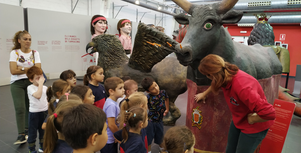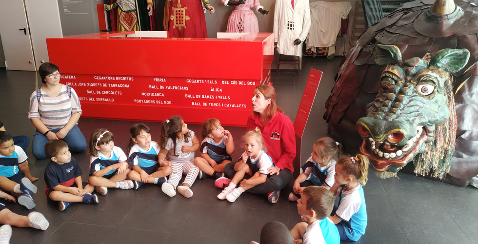En arribar, vam veure els gegants i ens vam descobrir el significat dels diferents elements del seguici popular de Tarragona, en vam conèixer la seva història i vam poder tocar-los i ficar-nos a dins.
