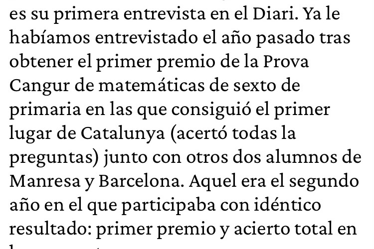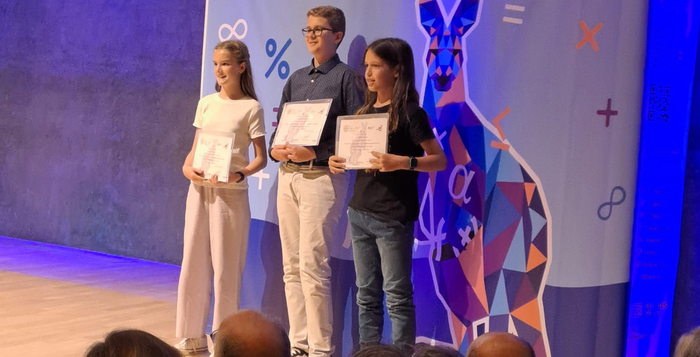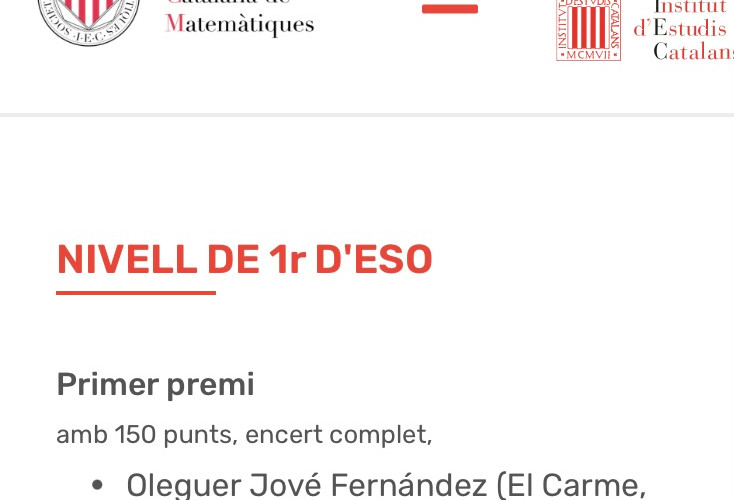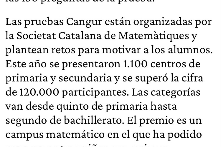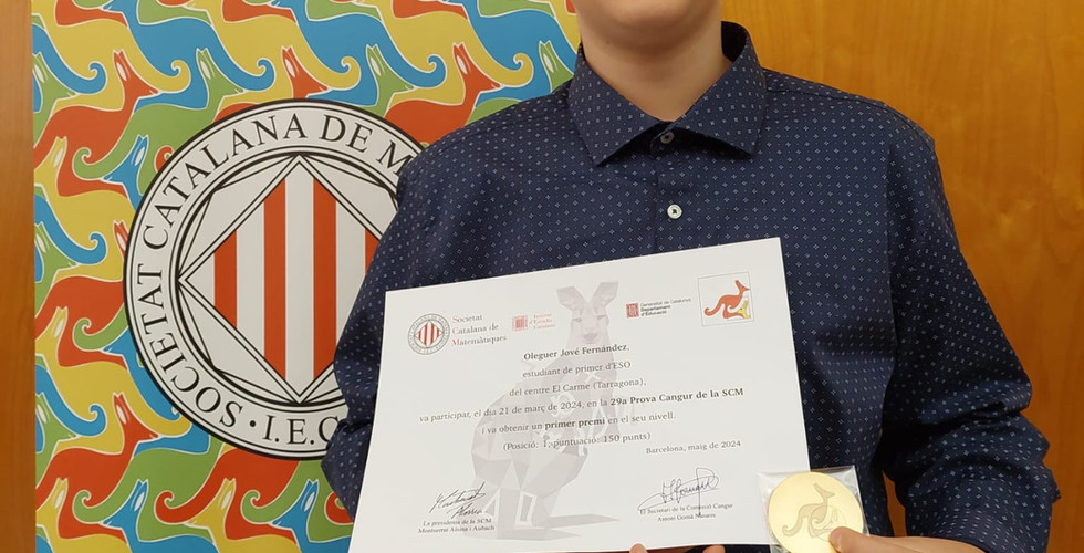 El dilluns passat vam ser a l'entrega de premis de la Prova Cangur 2024, el concurs que organitza la Societat Catalana de Matemàtiques. L'acte es va celebrar a l'Auditori Axa de Barcelona i el nostre alumne Oleguer, de 1r d'ESO, va obtenir el primer premi en la seva categoria. Va aconseguir una puntuació de 150/150 punts i aquest encert complet el va deixar en el primer lloc d'entre 23585 participants. És el tercer any consecutiu que aconsegueix aquesta primera posició i estem molt orgullosos d'aquests bons resultats. Enhorabona!